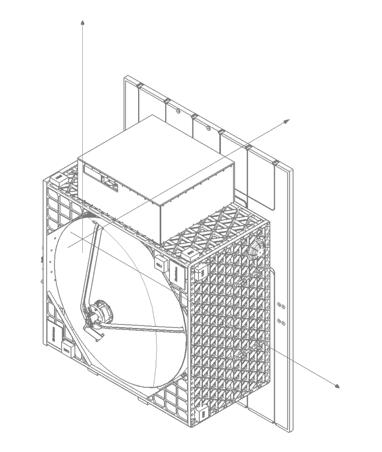 A 3D render produced by MM3D depicting a satellite design in the process of production by Reflex Aerospace.